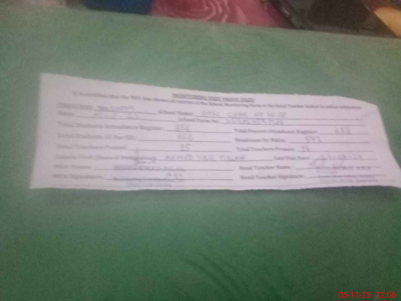 | Attendance Register | Head Teacher | MEA with School | Visit Proof |