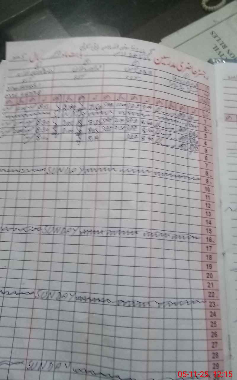 | 00**** | Wa**** Kh**** | CHOUKIDAR | 0 | 0 | 0 | 0 | 0 | 0 | 0 | 0 | 0 | Absent (Un-Authorized) | |