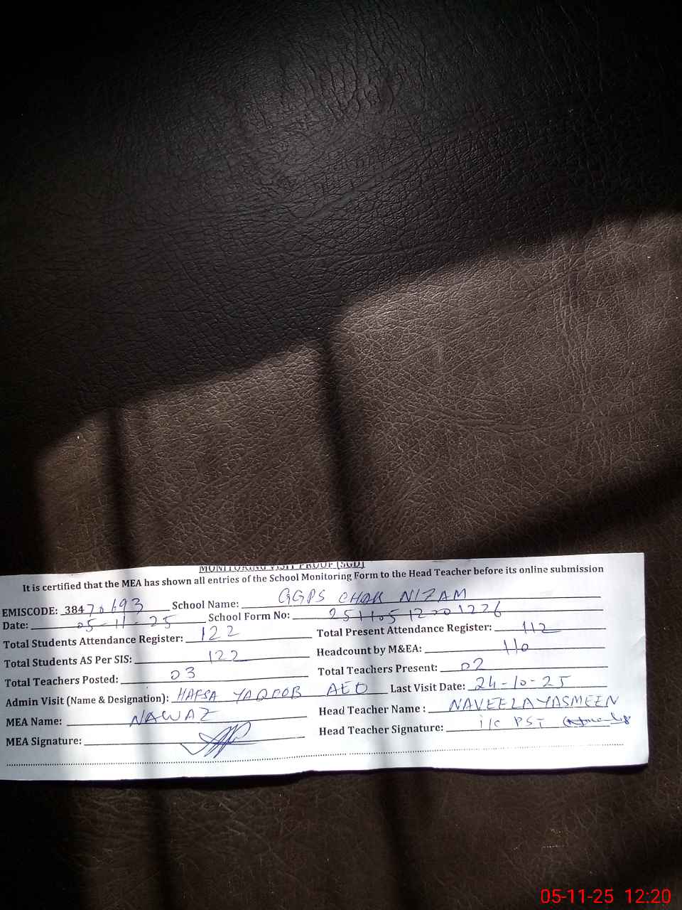 | EMIS Code: 38470693 | Name of School: GGPS CHAK NIZAM | |||