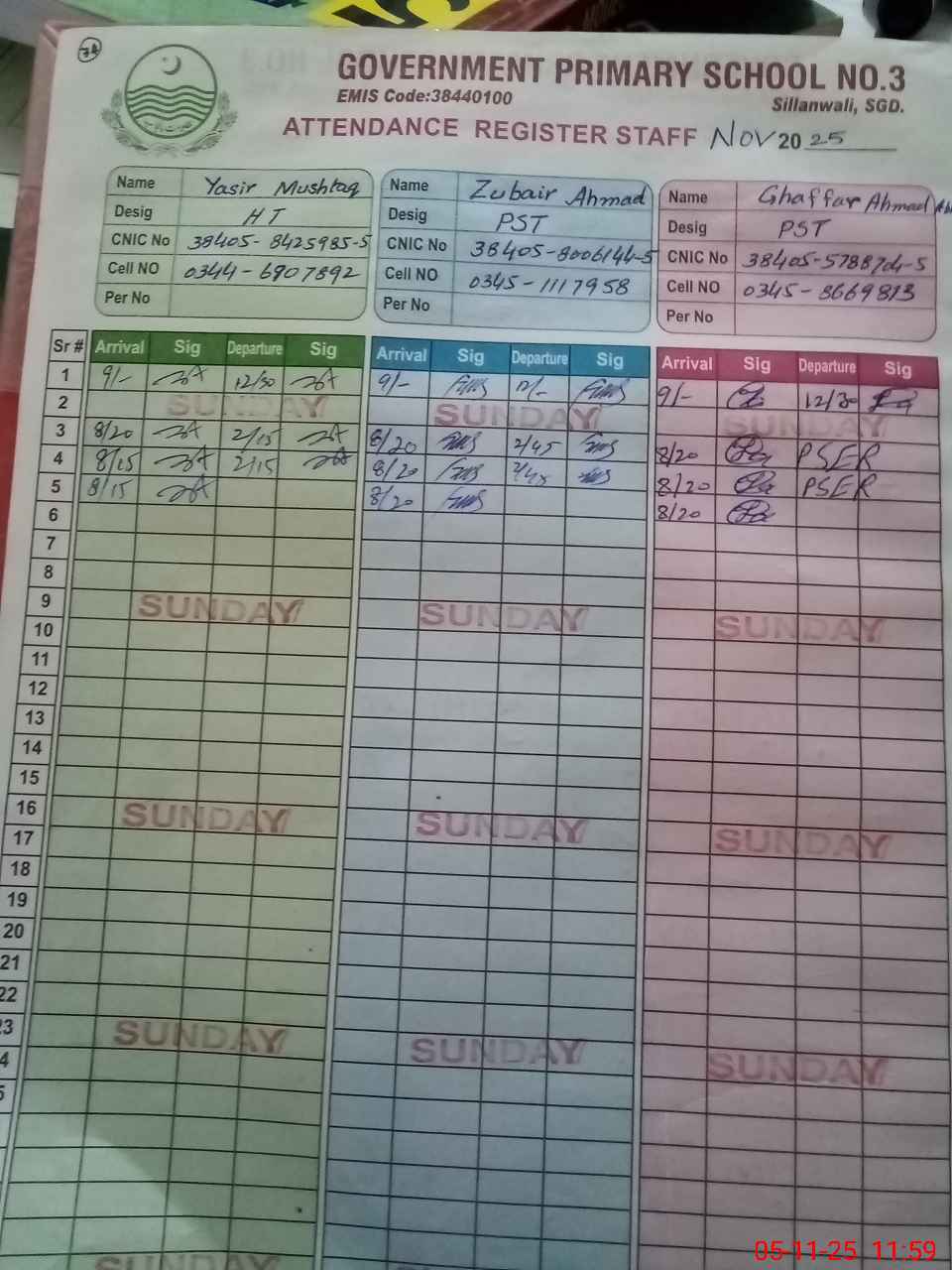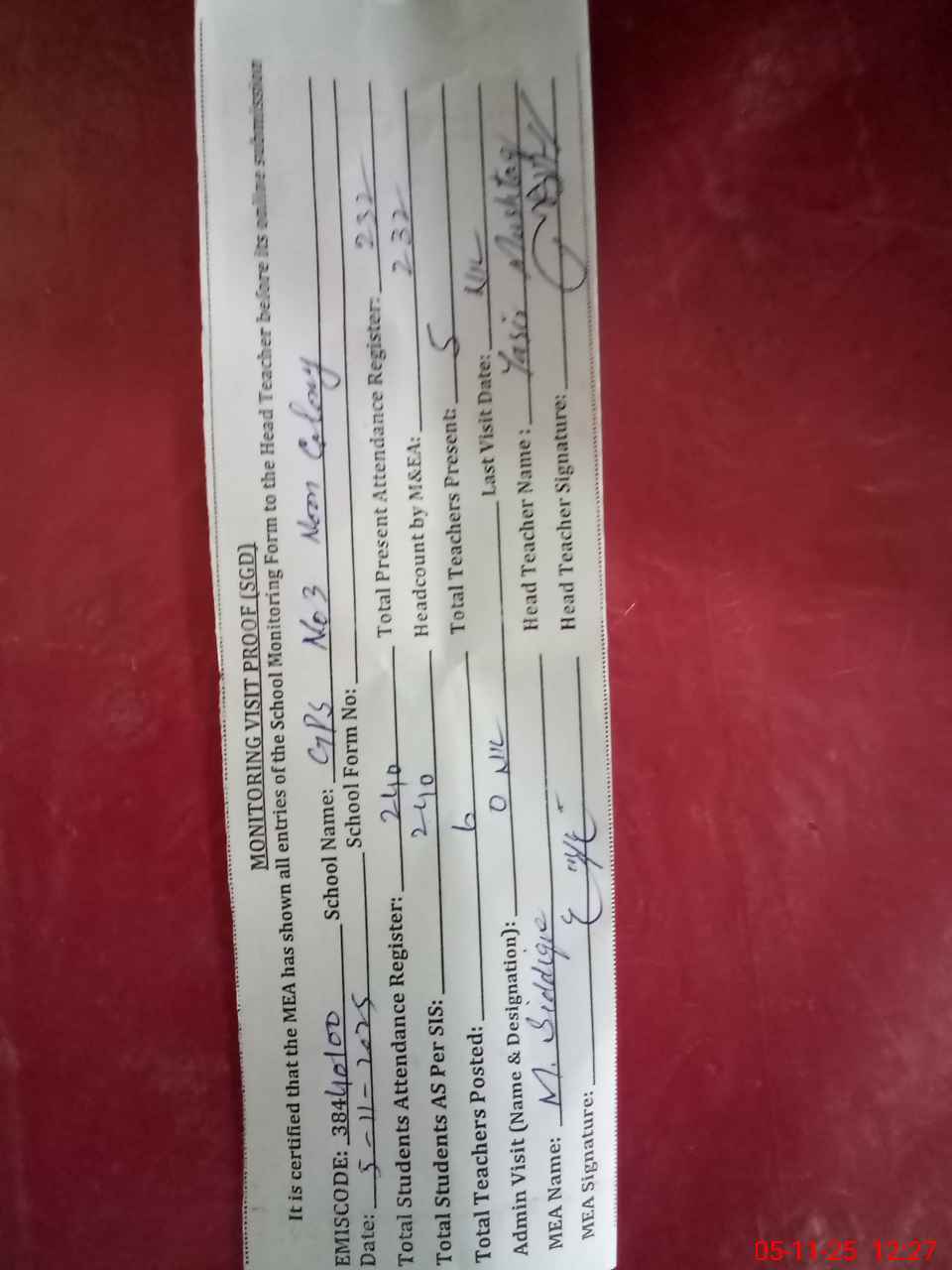 | EMIS Code: 38440100 | Name of School: GPS NO. 3 NOON COLONY SILLANWALI | |||