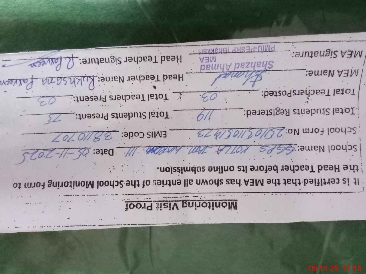 | EMIS Code: 38110707 | Name of School: GGPS KOTLA JAAM WARD NO. 111 | |||