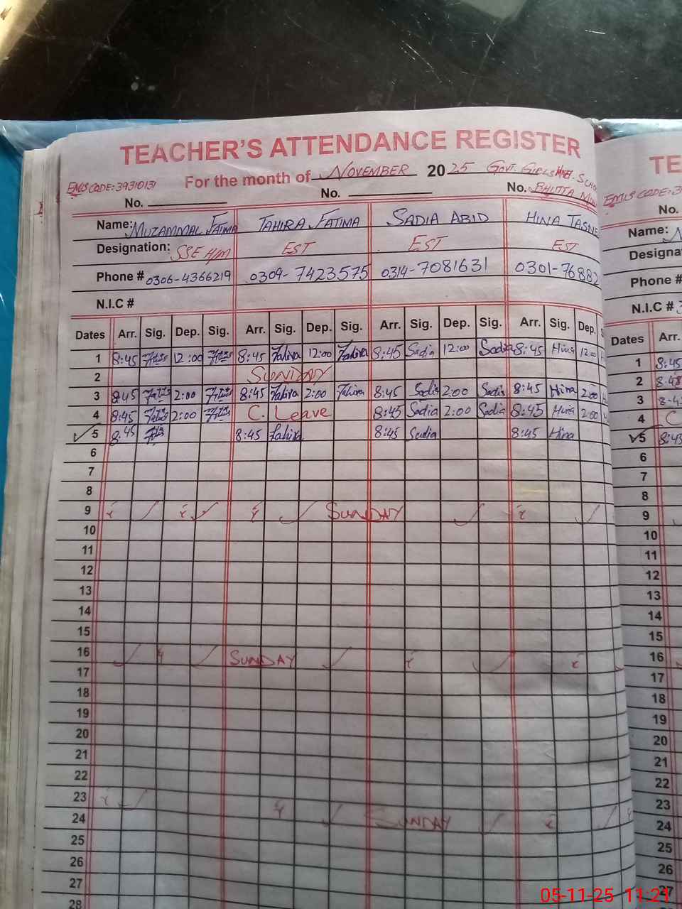 | Name: MU**** Fa**** Designation: (School Headmaster's/Headmistress's) SSE MATH Phone/Cell Number: 03**** |