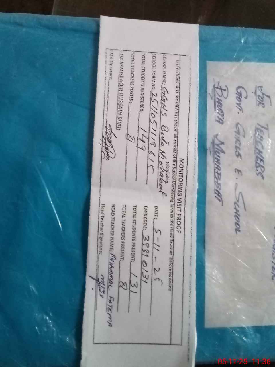 | Attendance Register | Head Teacher | MEA with School | Visit Proof |