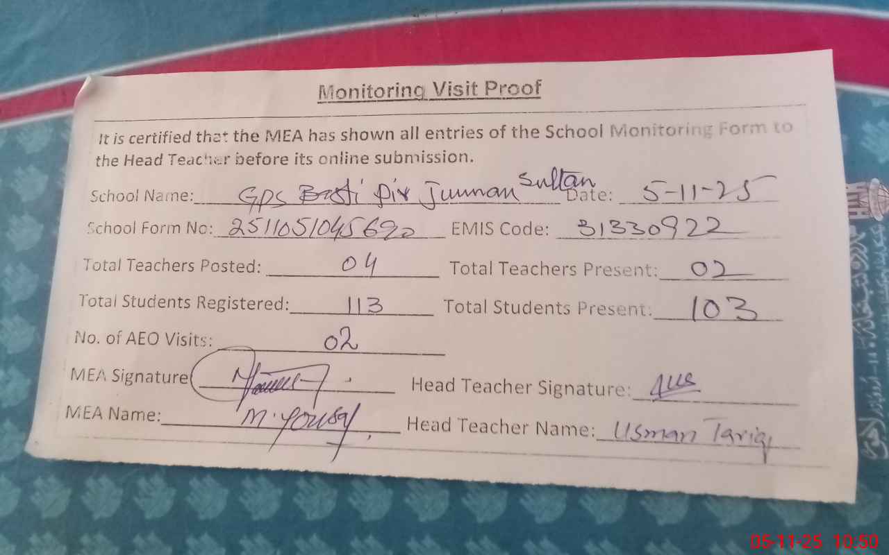 | EMIS Code: 31330922 | Name of School: GPS BASTI PIR JAMAN SULTAN | |||