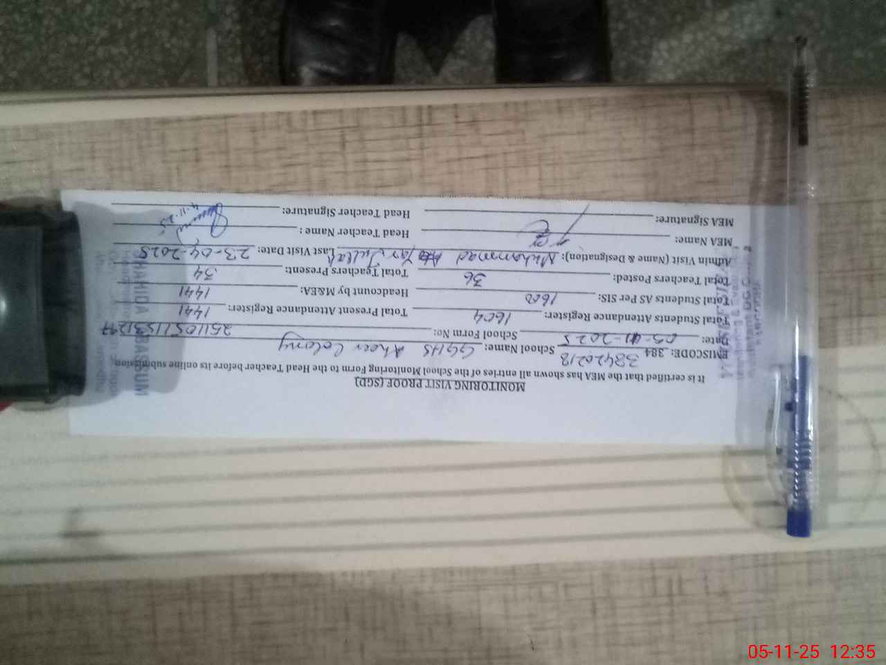 | Attendance Register | Head Teacher | MEA with School | Visit Proof |