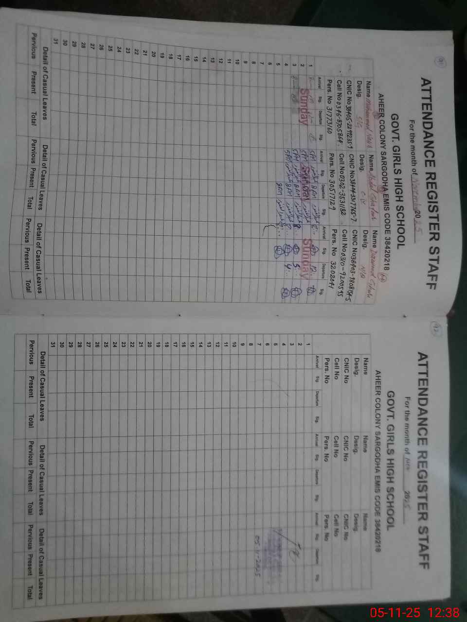 | EMIS Code: 38420218 | Name of School: GGHS AHEER COLONY SARGODHA | |||