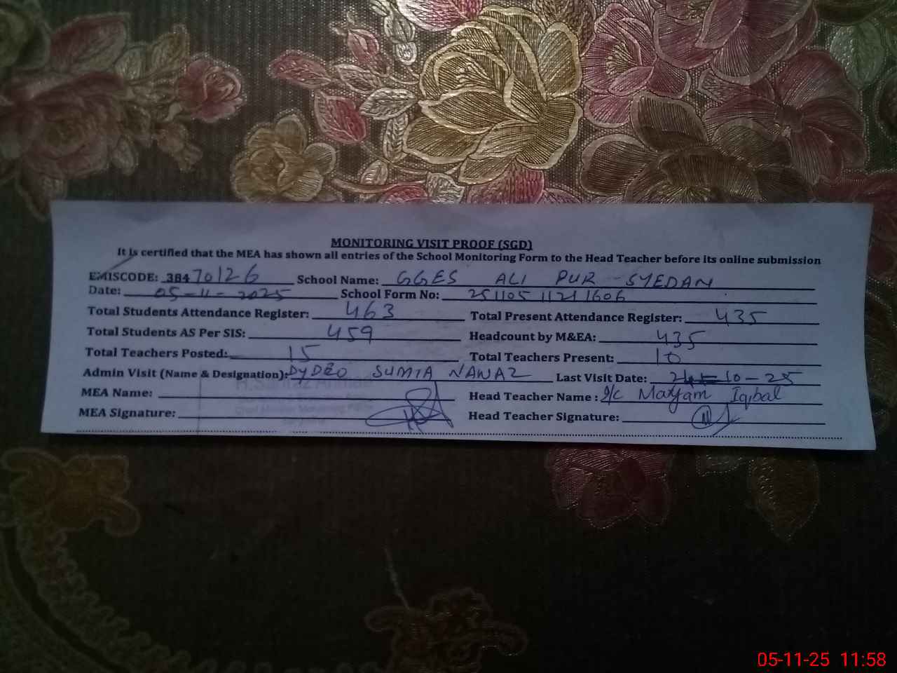 | EMIS Code: 38470126 | Name of School: GGES ALI PUR SYEDAN | |||
