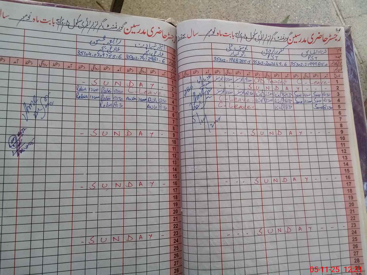 | CNIC | Full Name | Designation | R/C | Absence During Last Calender Month |