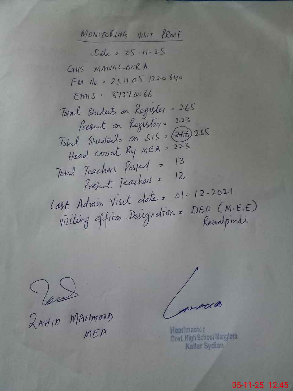 | EMIS Code: 37370066 | Name of School: GHS MANGLORA | |||