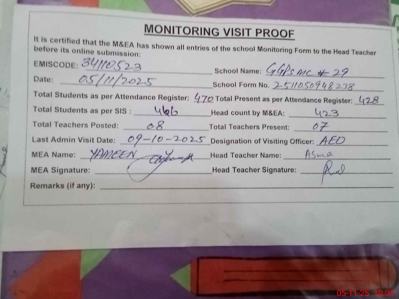 | EMIS Code: 34110523 | Name of School: GGPS MC NO.29 GUJRANWALA | |||