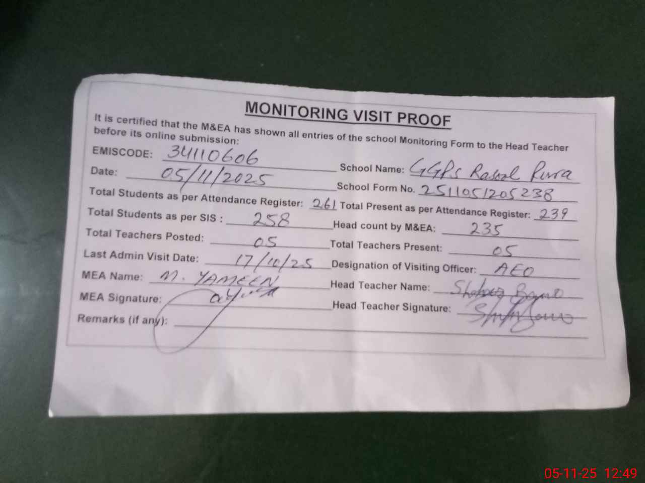 | EMIS Code: 34110606 | Name of School: GGPS RASOOL PURA | |||