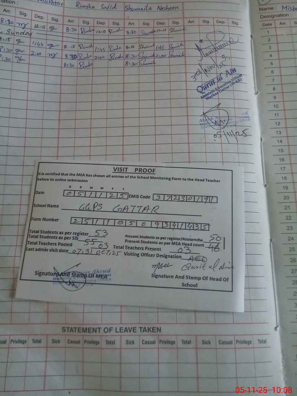 | EMIS Code: 37230191 | Name of School: GGPS GATTAR | |||