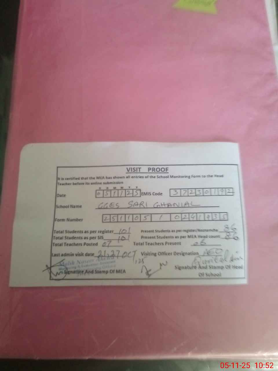| EMIS Code: 37230192 | Name of School: GGES SERI GHANIAL | |||