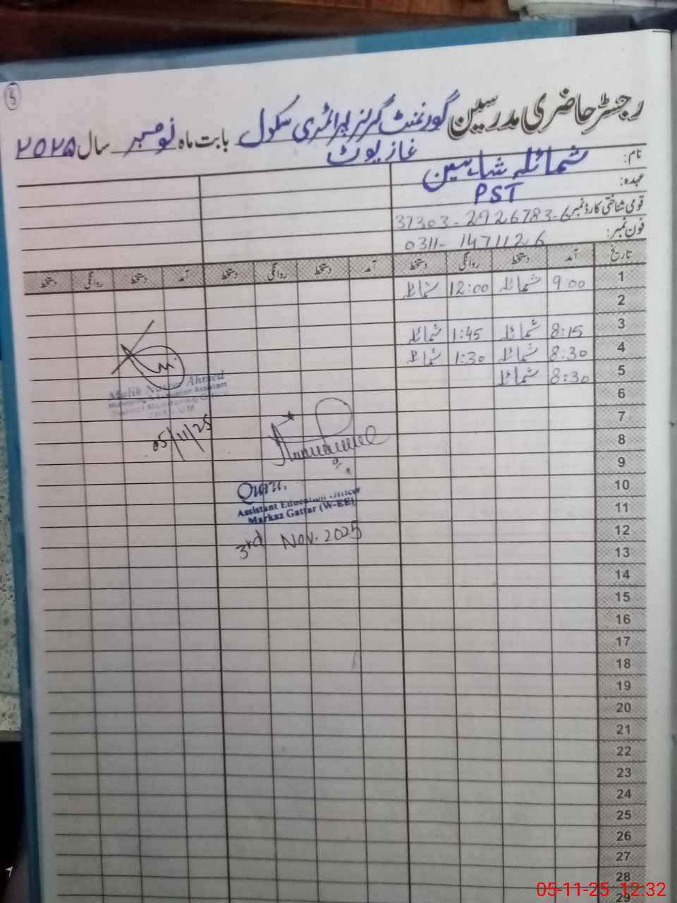 | Name: So**** il**** Designation: (School Headmaster's/Headmistress's) HEADMASTER Phone/Cell Number: 03**** |