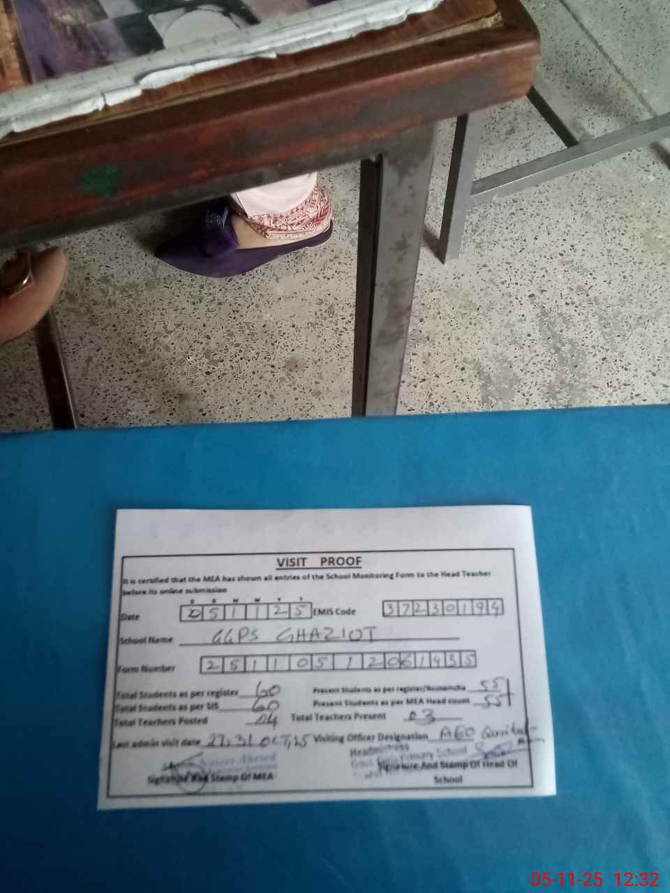 | Attendance Register | Head Teacher | MEA with School | Visit Proof |