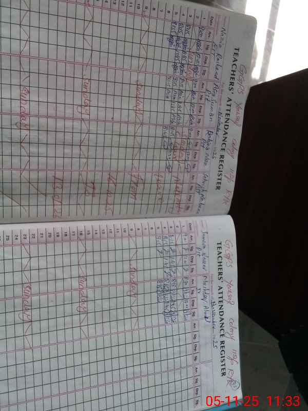 | Total no. of Classrooms: 6 No. of Classrooms Used for Teaching: 6 No. of Classrooms Storing Old Furniture, FTBs, etc: 0Comments if Any: Record of nsb and ftf on Cash book is not maintain |