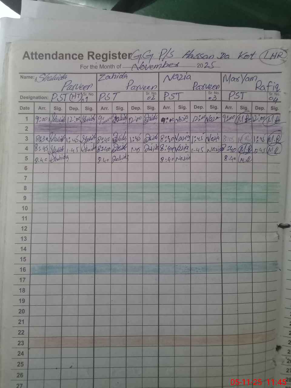 | Monitoring Date: 05-11-2025 | Start Time: 05-11-2025 11:21 AM | End Time: 05-11-2025 12:01 PM | Name of MEA: SH**** ID**** | |