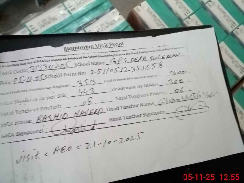 | EMIS Code: 31330205 | Name of School: GPS DERA SULEMAN | |||