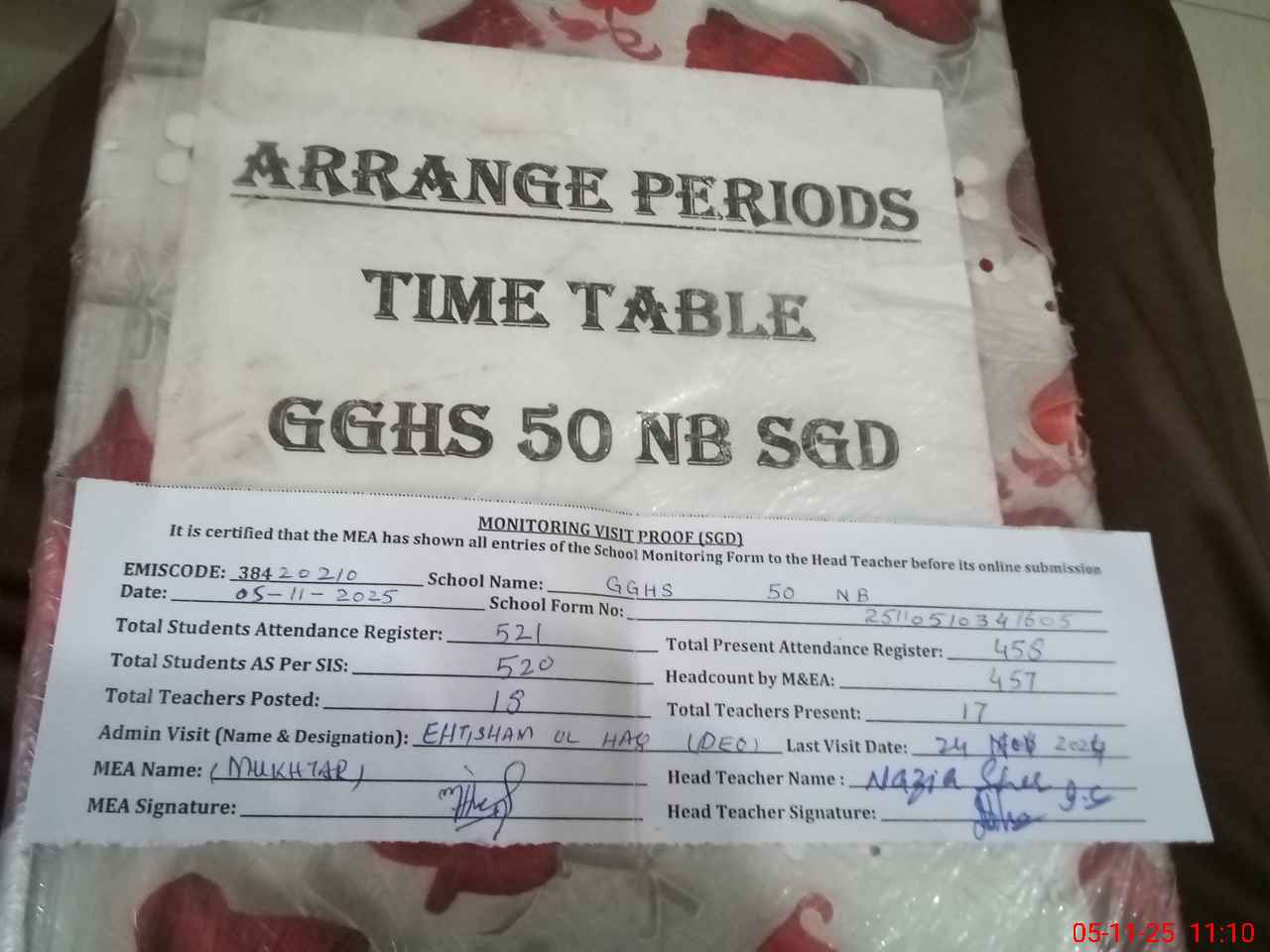 | EMIS Code: 38420210 | Name of School: GGHS CHAK NO.50 NB | |||
