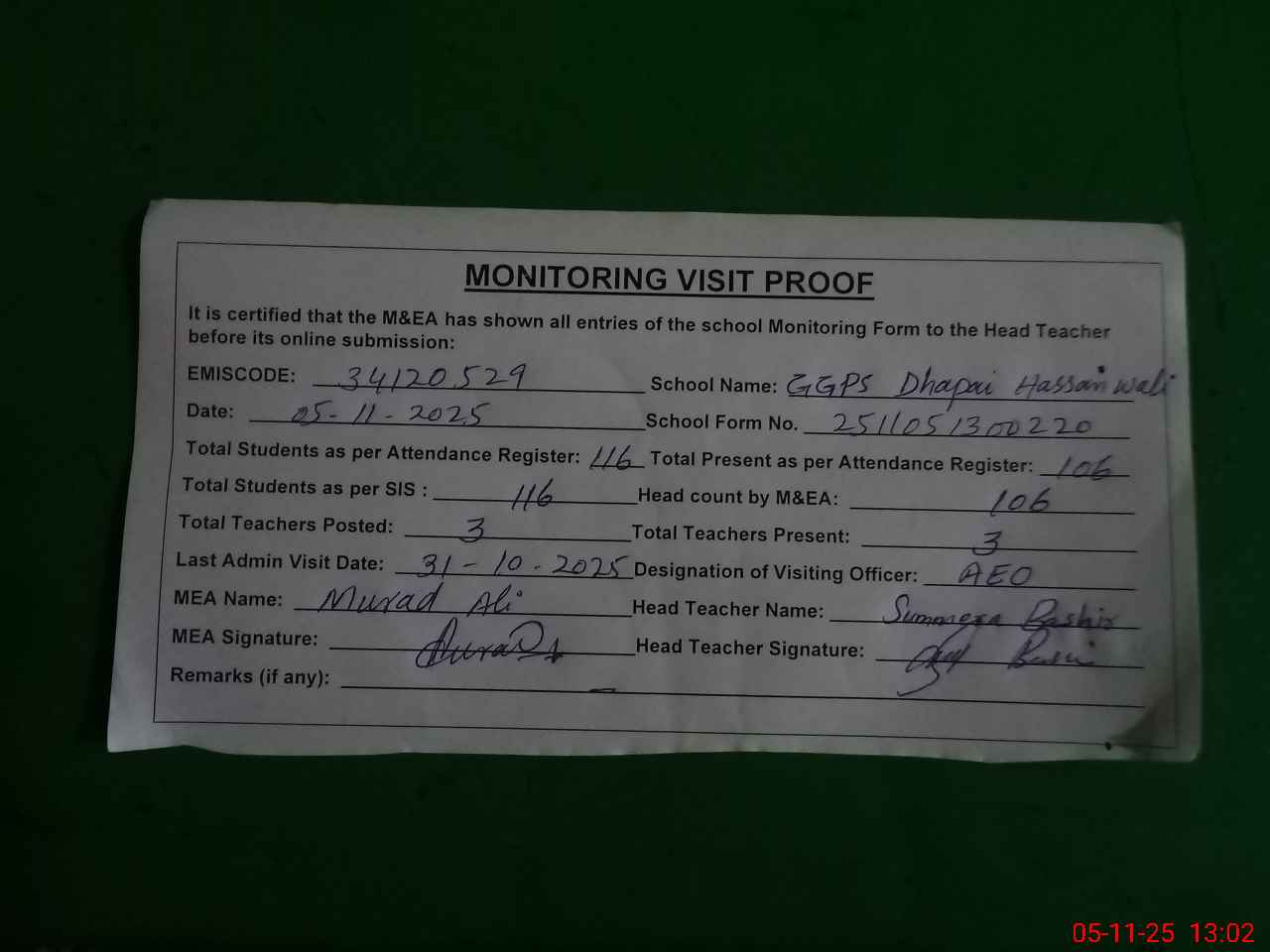 | EMIS Code: 34120529 | Name of School: GGPS DHAPAI HASSAN WALI | |||