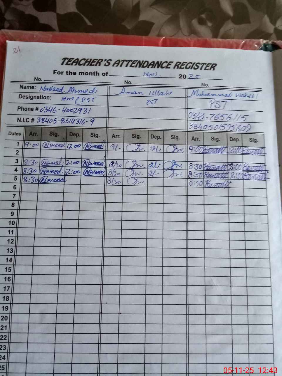| Name: Na**** Ah**** Designation: (School Headmaster's/Headmistress's) PST Phone/Cell Number: 03**** |