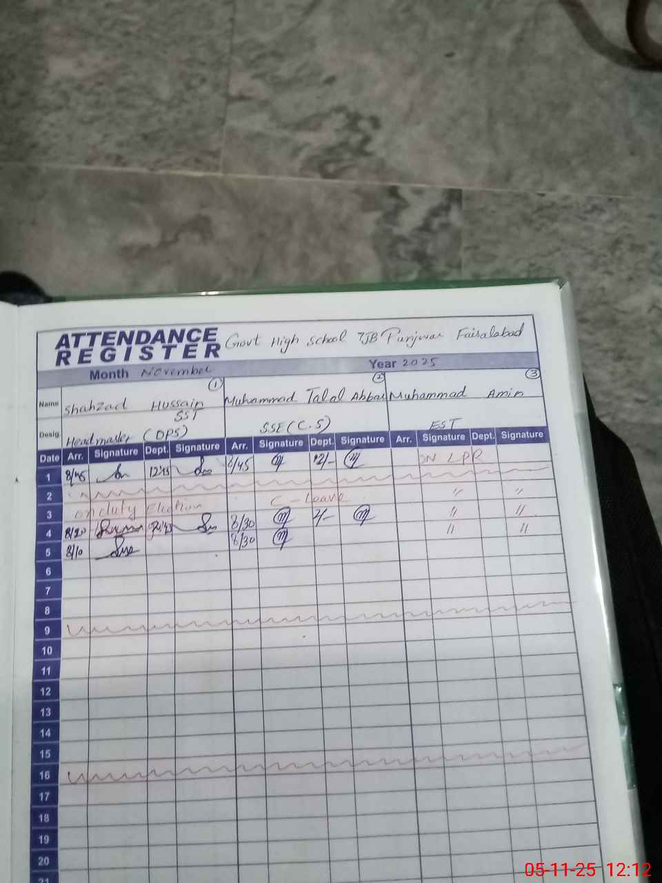 | CNIC | Full Name | Designation | R/C | Absence During Last Calender Month |