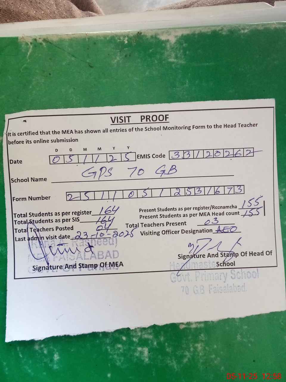 | EMIS Code: 33120262 | Name of School: GPS 70 GB | |||