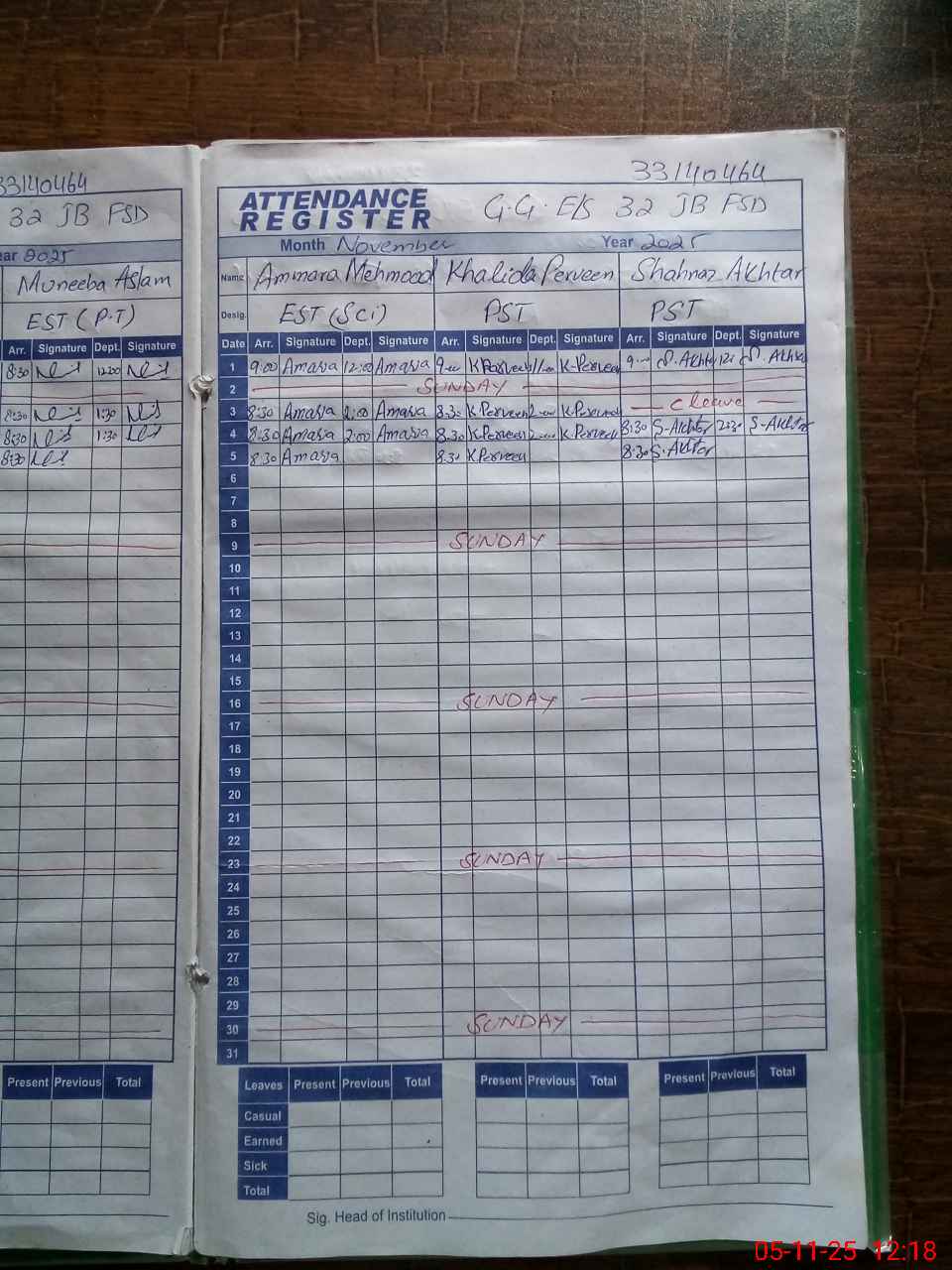 | Name: Sh**** Wa**** Designation: (School Headmaster's/Headmistress's) EST(General) Phone/Cell Number: 03**** |