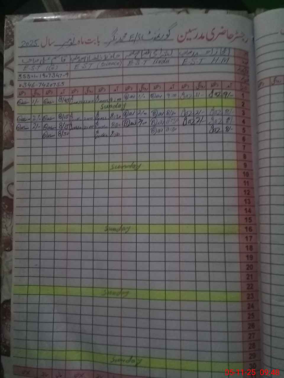 | Name: MU**** AH**** Designation: (School Headmaster's/Headmistress's) SST GEN Phone/Cell Number: 03**** |