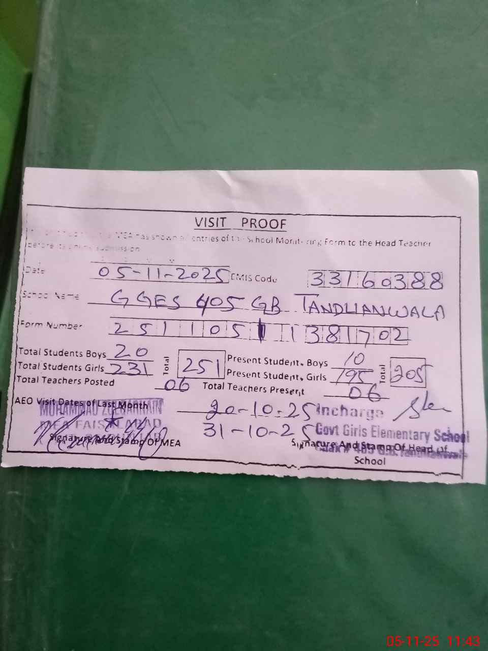 | EMIS Code: 33160388 | Name of School: GGES 405 GB I | |||