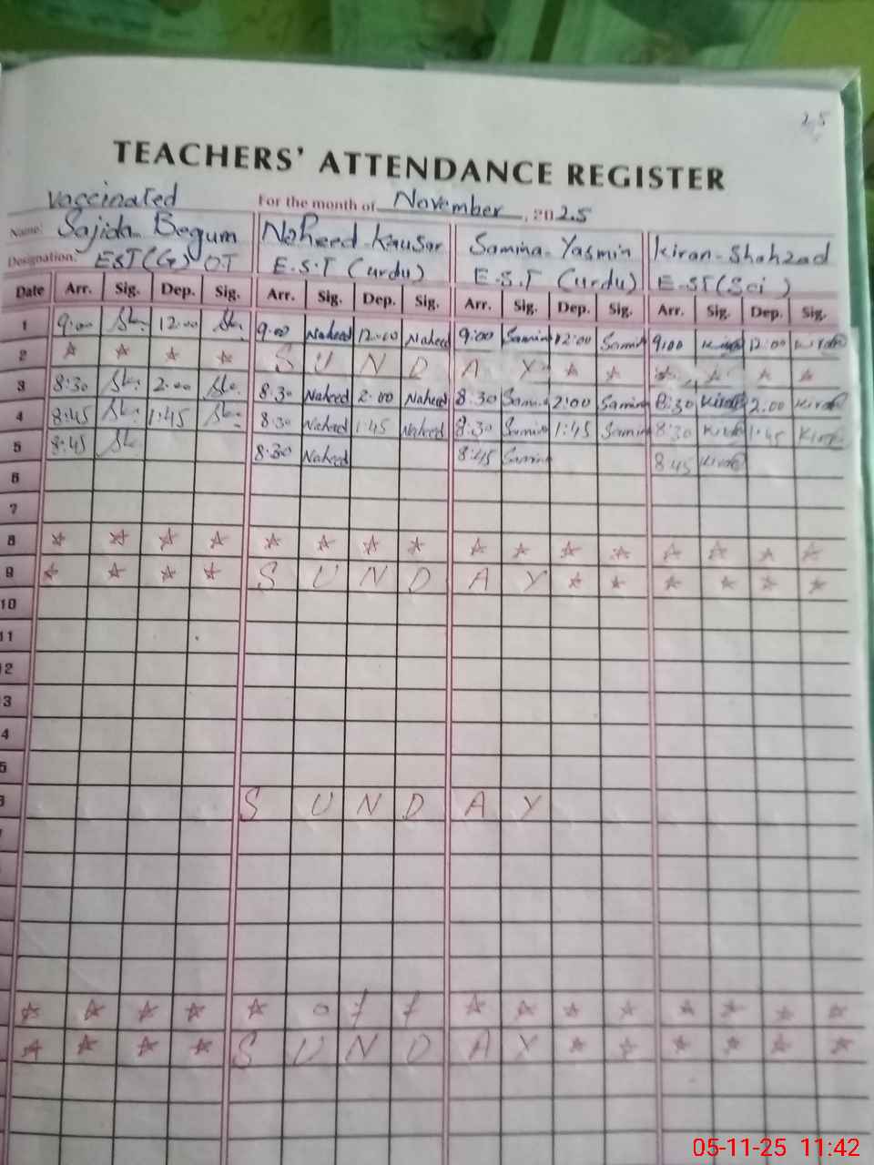 | Name: SA**** BE**** Designation: (School Headmaster's/Headmistress's) EST (GENERAL ) Phone/Cell Number: 03**** |