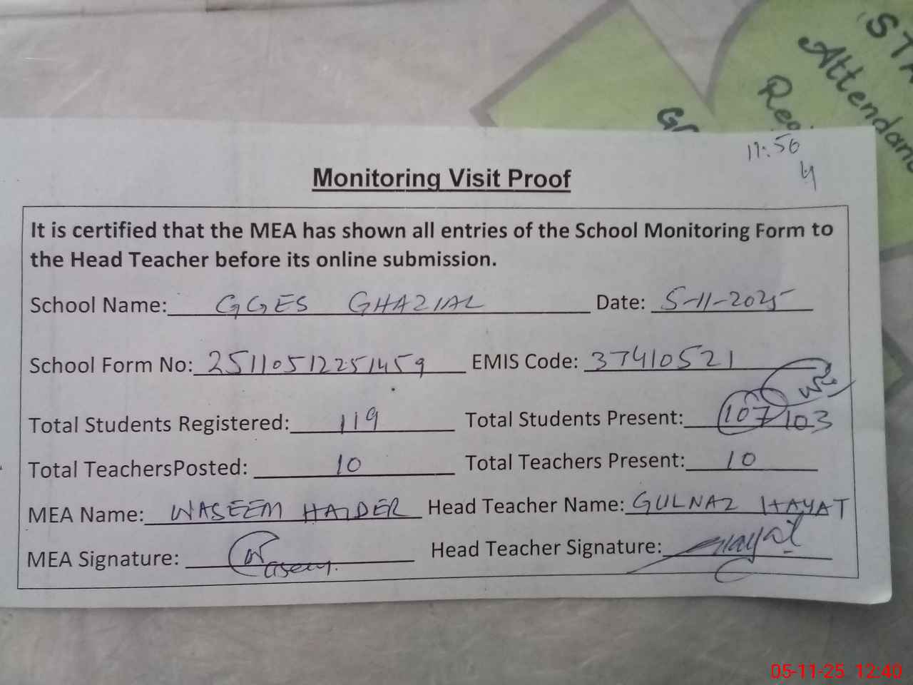 | EMIS Code: 37410521 | Name of School: GGES GHAZYAL | |||