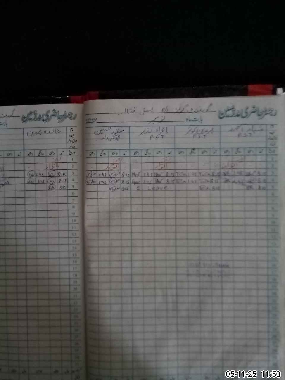 | CNIC | Full Name | Designation | R/C | Absence During Last Calender Month |