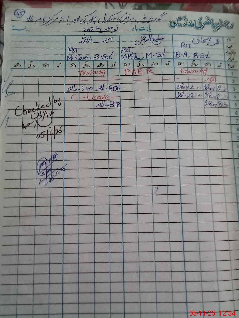 | CNIC | Full Name | Designation | R/C | Absence During Last Calender Month |