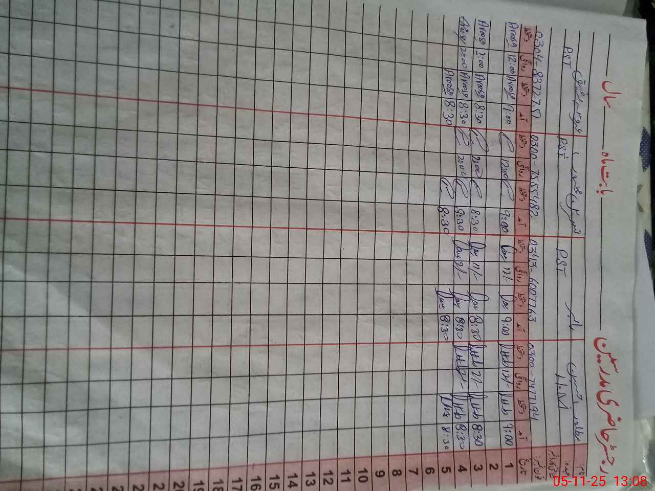 | CNIC | Full Name | Designation | R/C | Absence during last cal. month |
