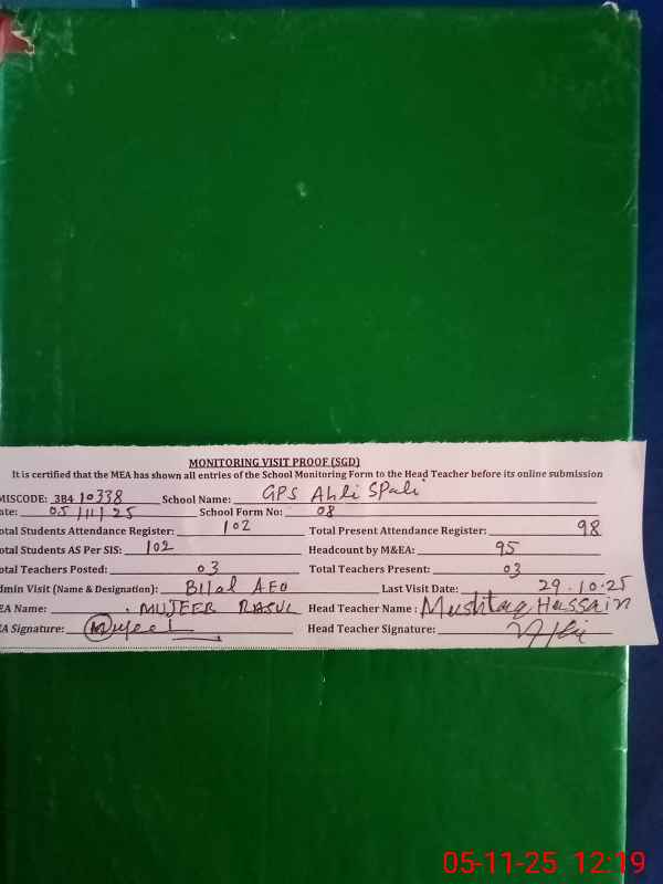 | EMIS Code: 38410338 | Name of School: GPS AHLI SPALI | |||
