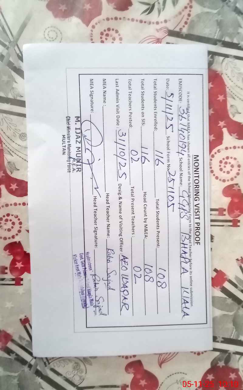 | EMIS Code: 36140194 | Name of School: GGPS BHAPLA WALA | |||