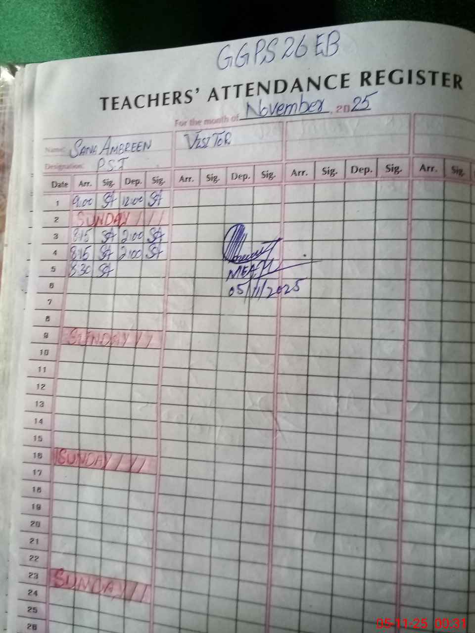 | Attendance Register | Head Teacher | MEA with School | Visit Proof |