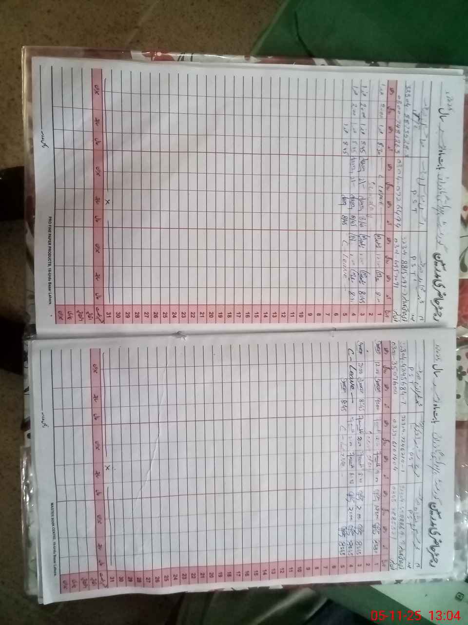 | CNIC | Full Name | Designation | R/C | Absence During Last Calender Month |