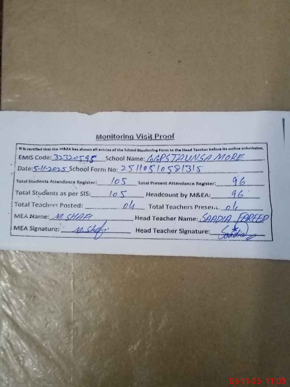 | EMIS Code: 32320595 | Name of School: GGPS TAUNSA MORE | |||
