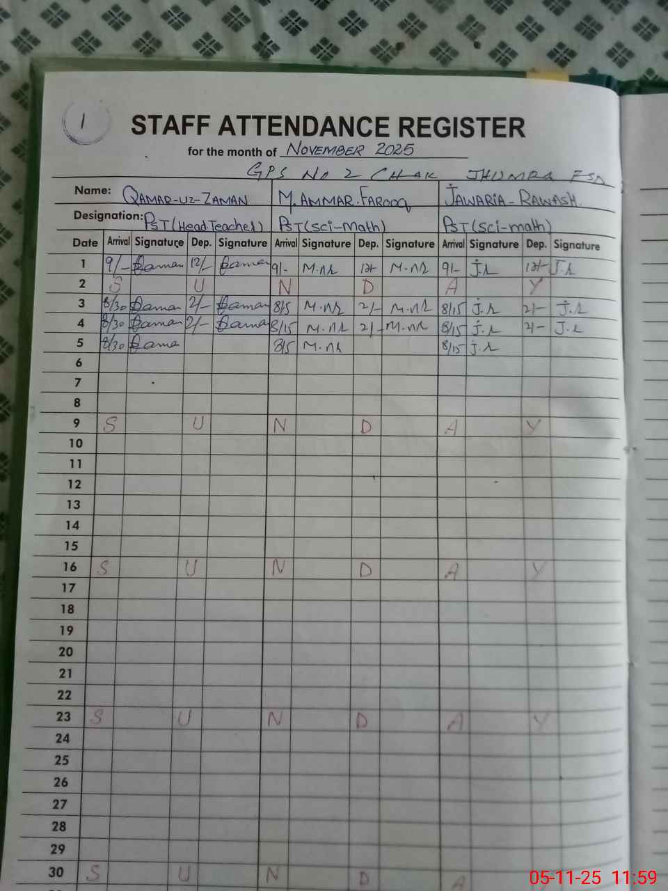 | Name: QA**** UZZA**** Designation: (School Headmaster's/Headmistress's) PST Phone/Cell Number: 03**** |