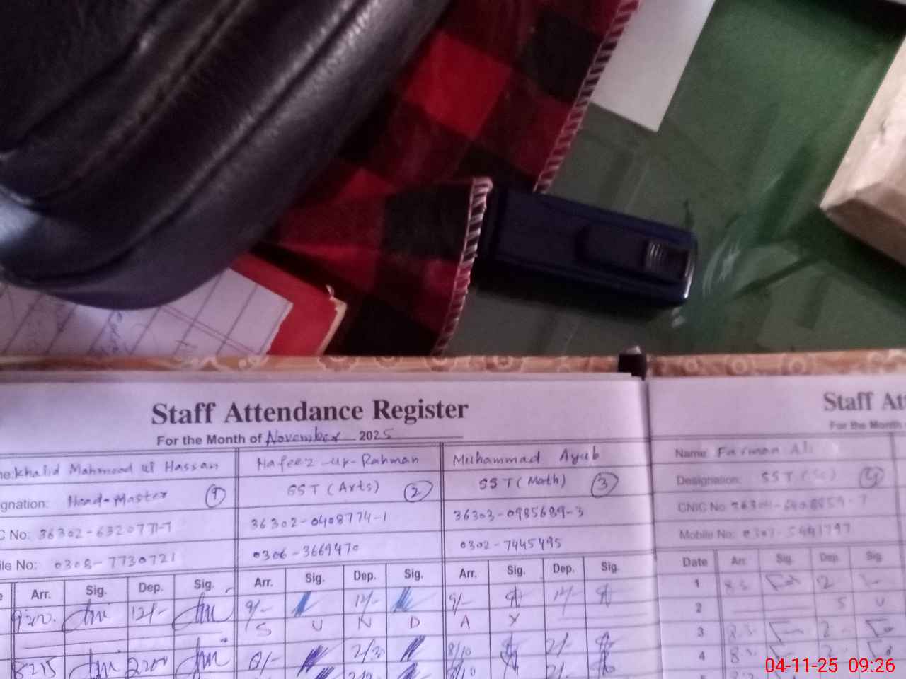| Name: Kh**** Me**** UlHa**** Designation: (School Headmaster's/Headmistress's) Head Master Phone/Cell Number: 03**** |