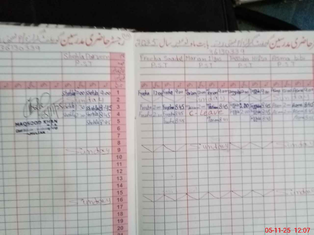 | Name: Ta**** Hi**** Designation: (School Headmaster's/Headmistress's) HEADMISTRESS Phone/Cell Number: 03**** |
