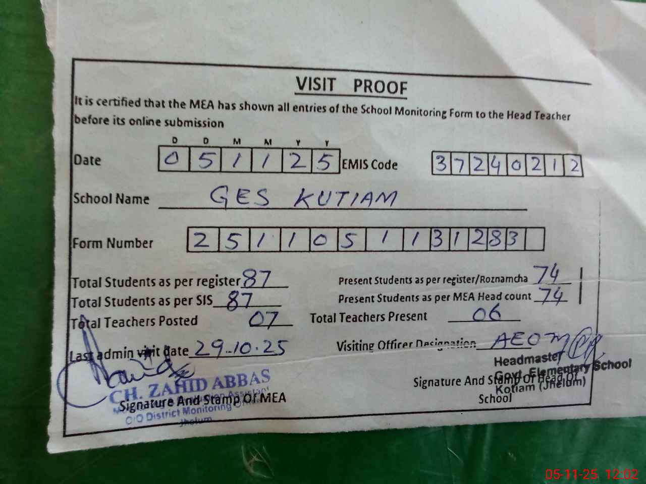 | Attendance Register | Head Teacher | MEA with School | Visit Proof |