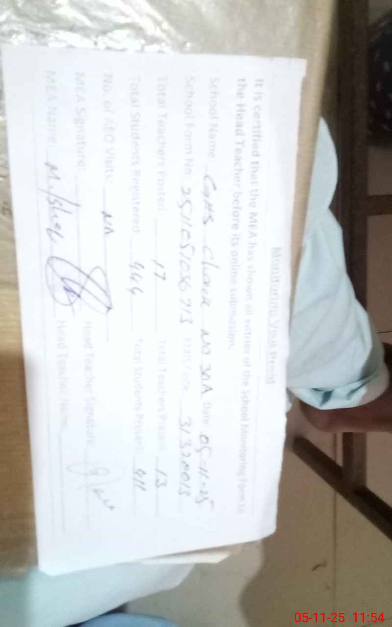 | Certified that this School was Inspected by the Undersigned MEA/DMO Today and the Information Stated Above is as Per Record. | |||||