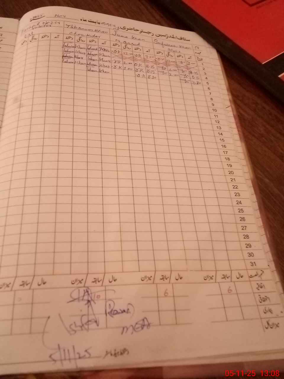 | CNIC | Full Name | Designation | R/C | Absence during last cal. month |