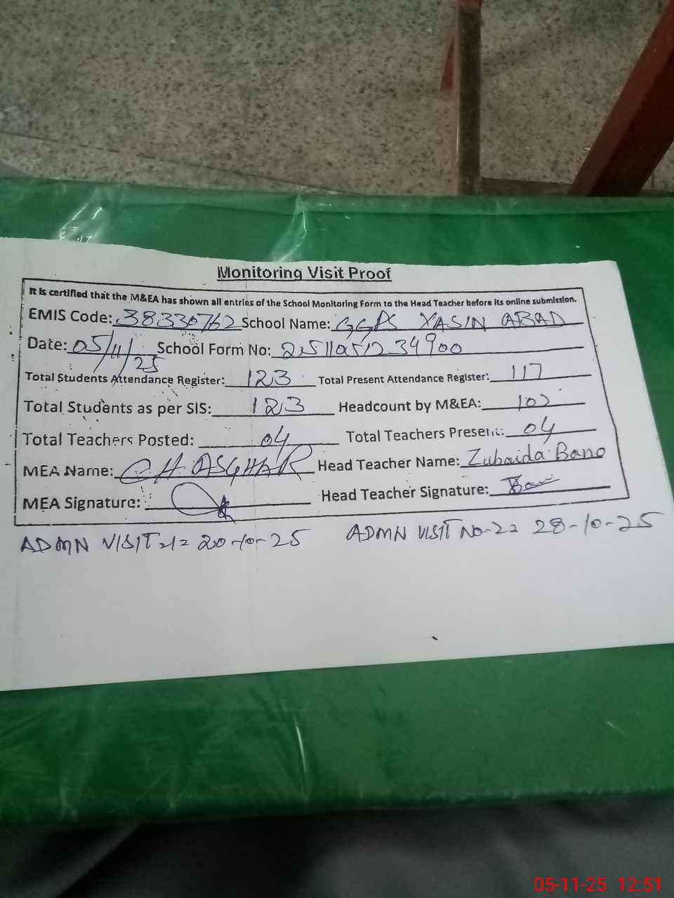 | EMIS Code: 38330762 | Name of School: GGPS YASIN ABAD | |||
