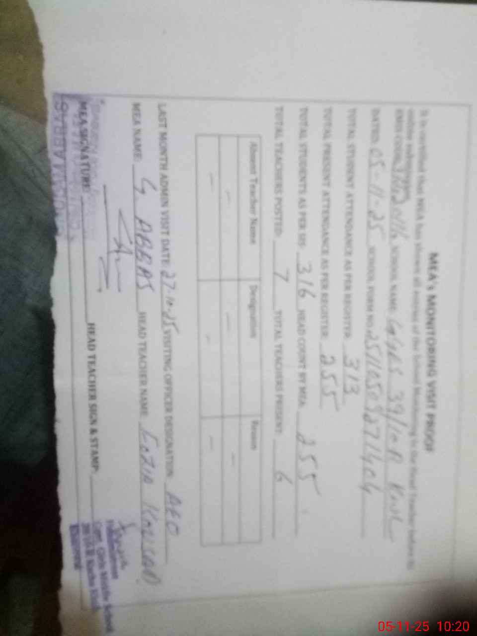 | EMIS Code: 36420116 | Name of School: GGES 39/10-R, KACHA KHUH | |||