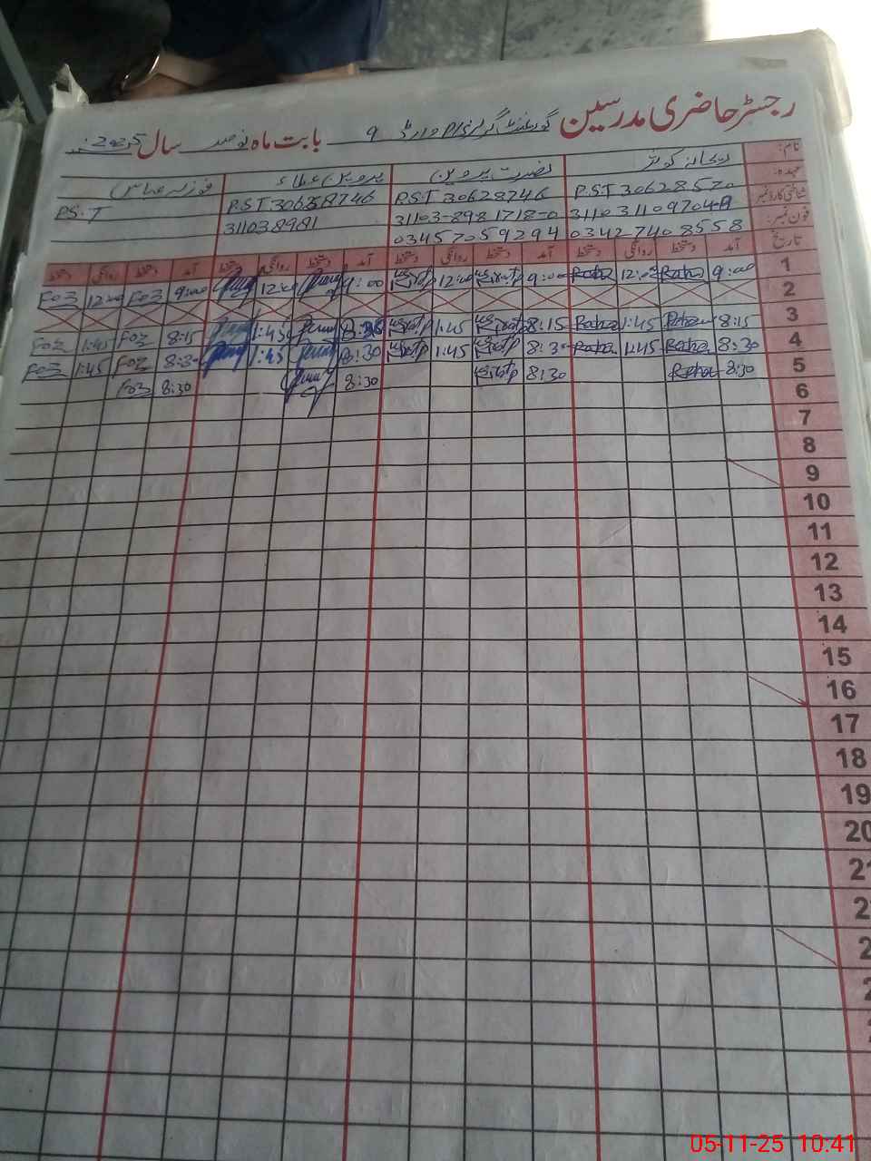 | CNIC | Full Name | Designation | R/C | Absence During Last Calender Month |