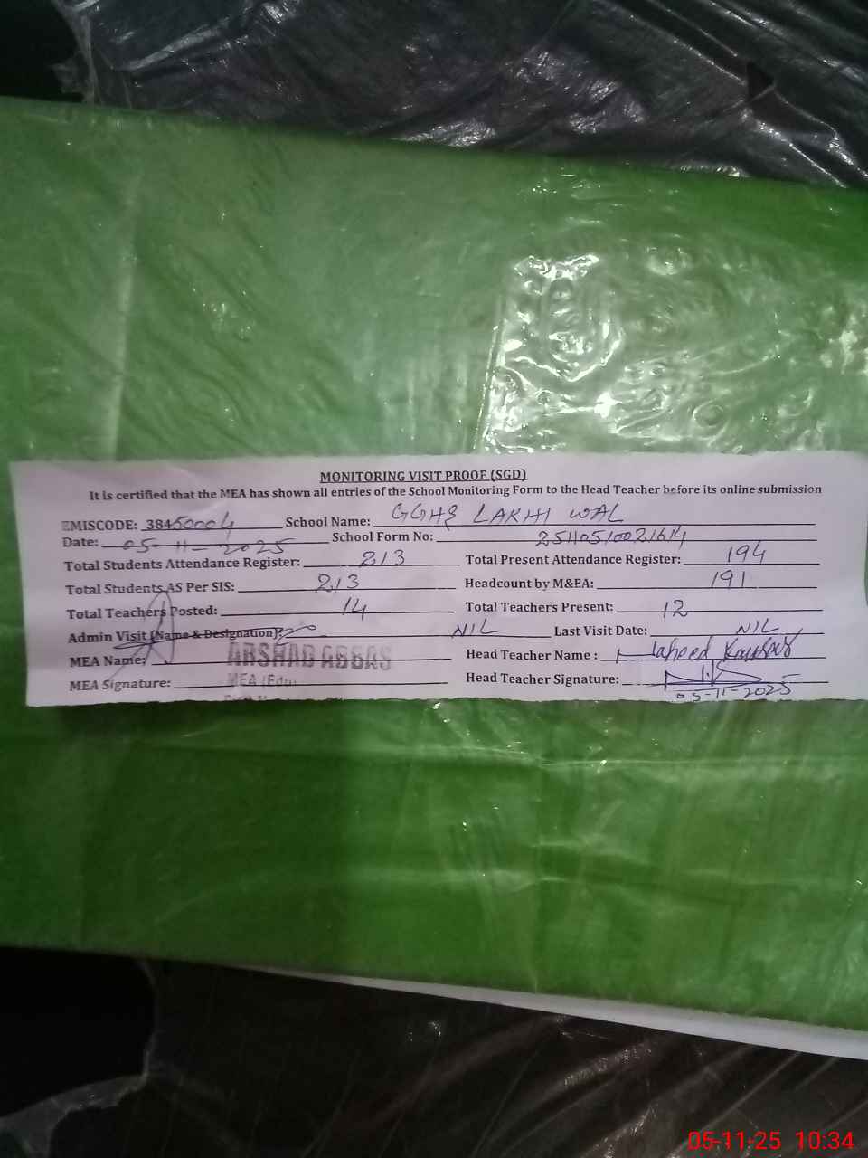 | EMIS Code: 38450004 | Name of School: GGHS LAKHI WAL | |||